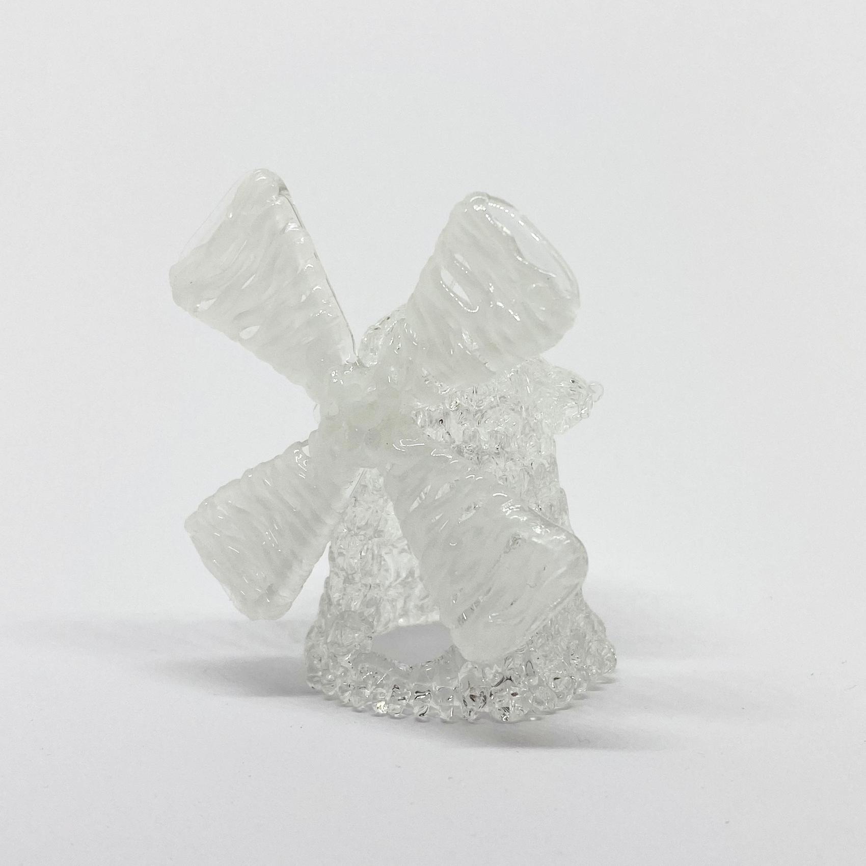 Figuras realizadas en vidrio de Borosilicato, con la técnica de vidrio tejido. El cuerpo o parte de la figura esta hecha con esta técnica, que consiste en dar calor, unos 1200 grados al extremo de una varilla de vidrio para que en cuestión de segundos, lo que tarda en solidificarse, hacer un tejido similar al crochet si se tratase de hilo en lugar de vidrio.