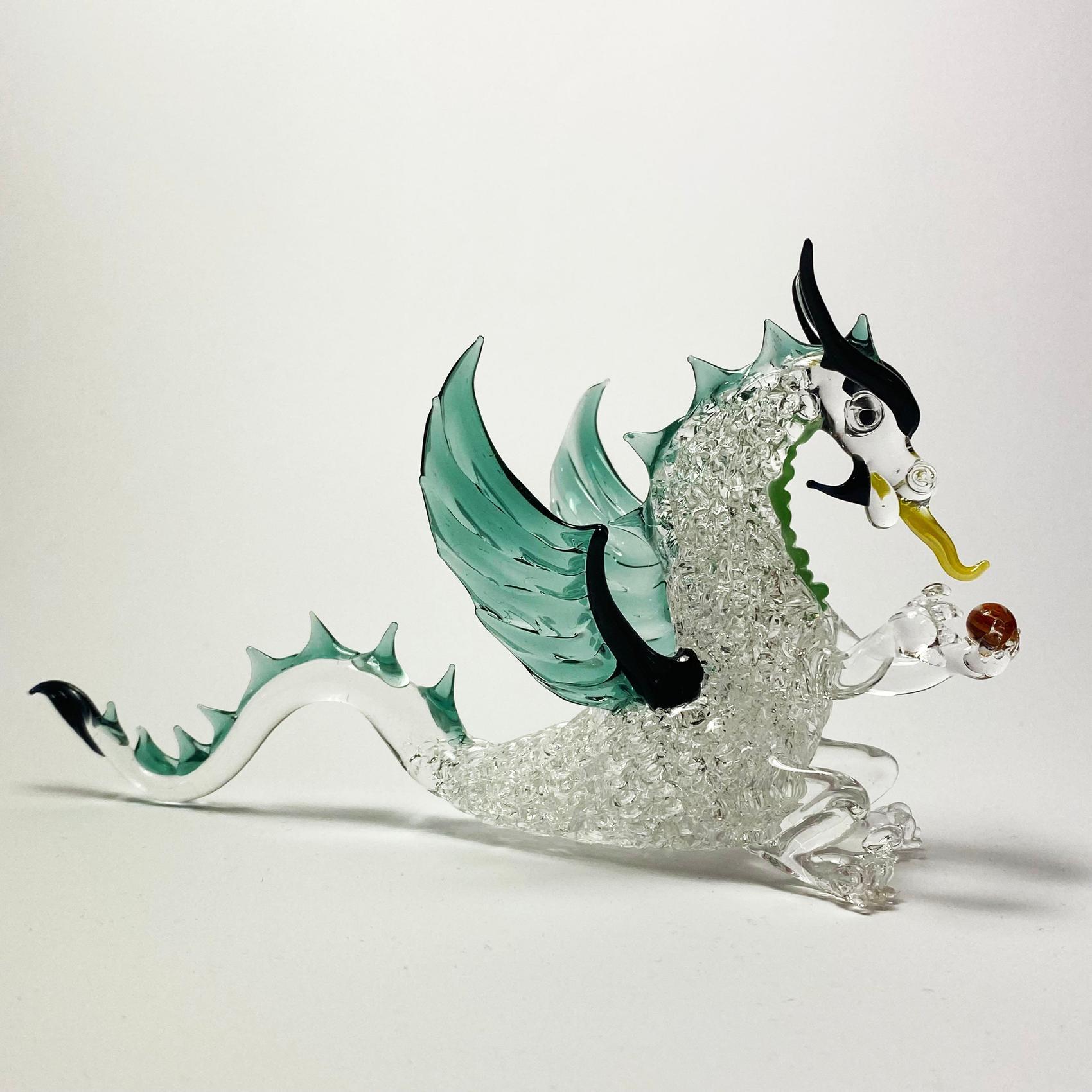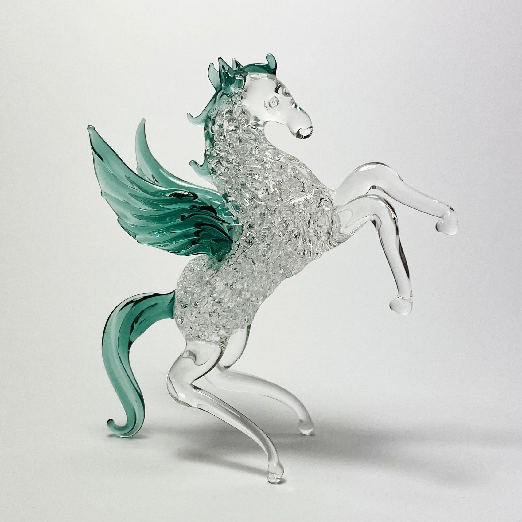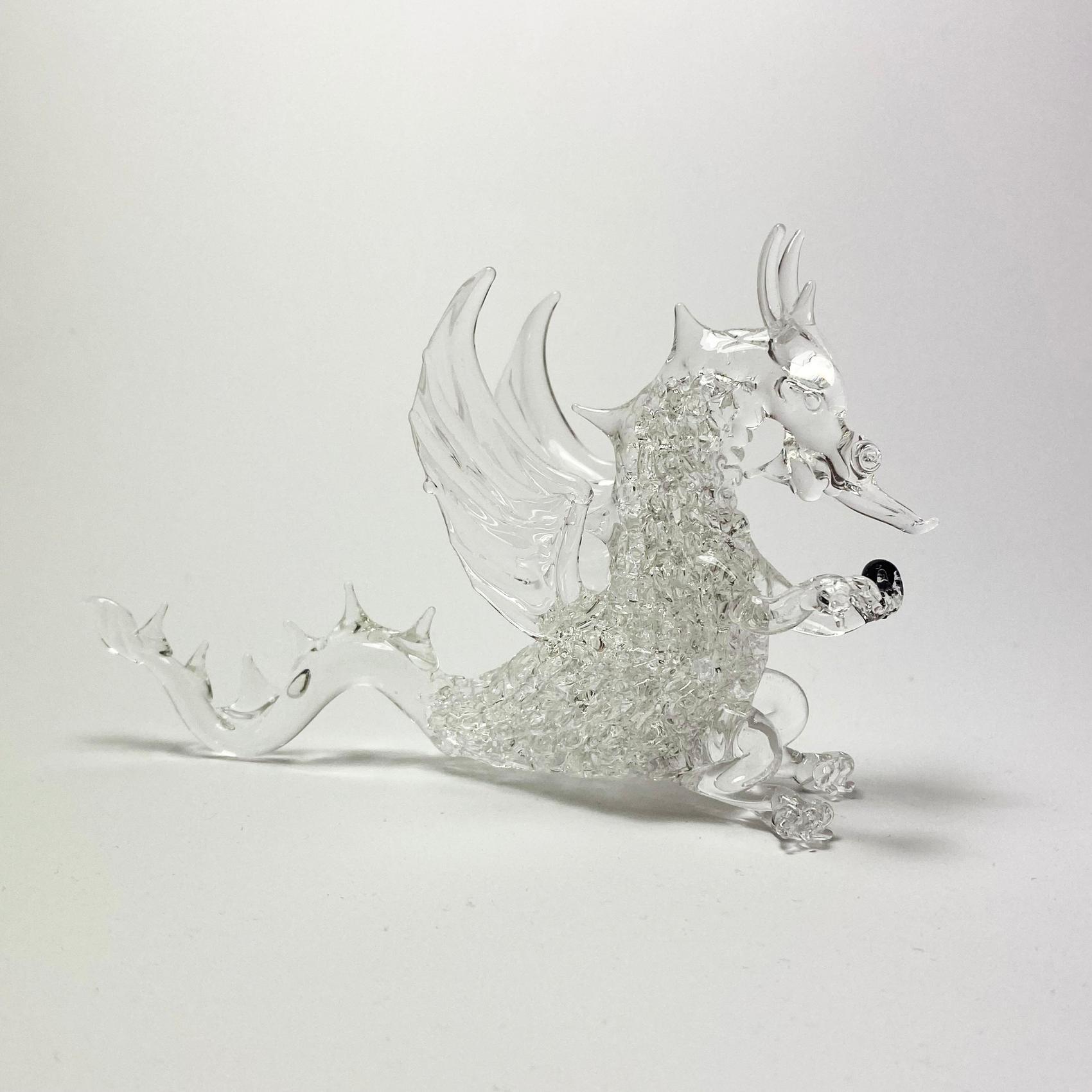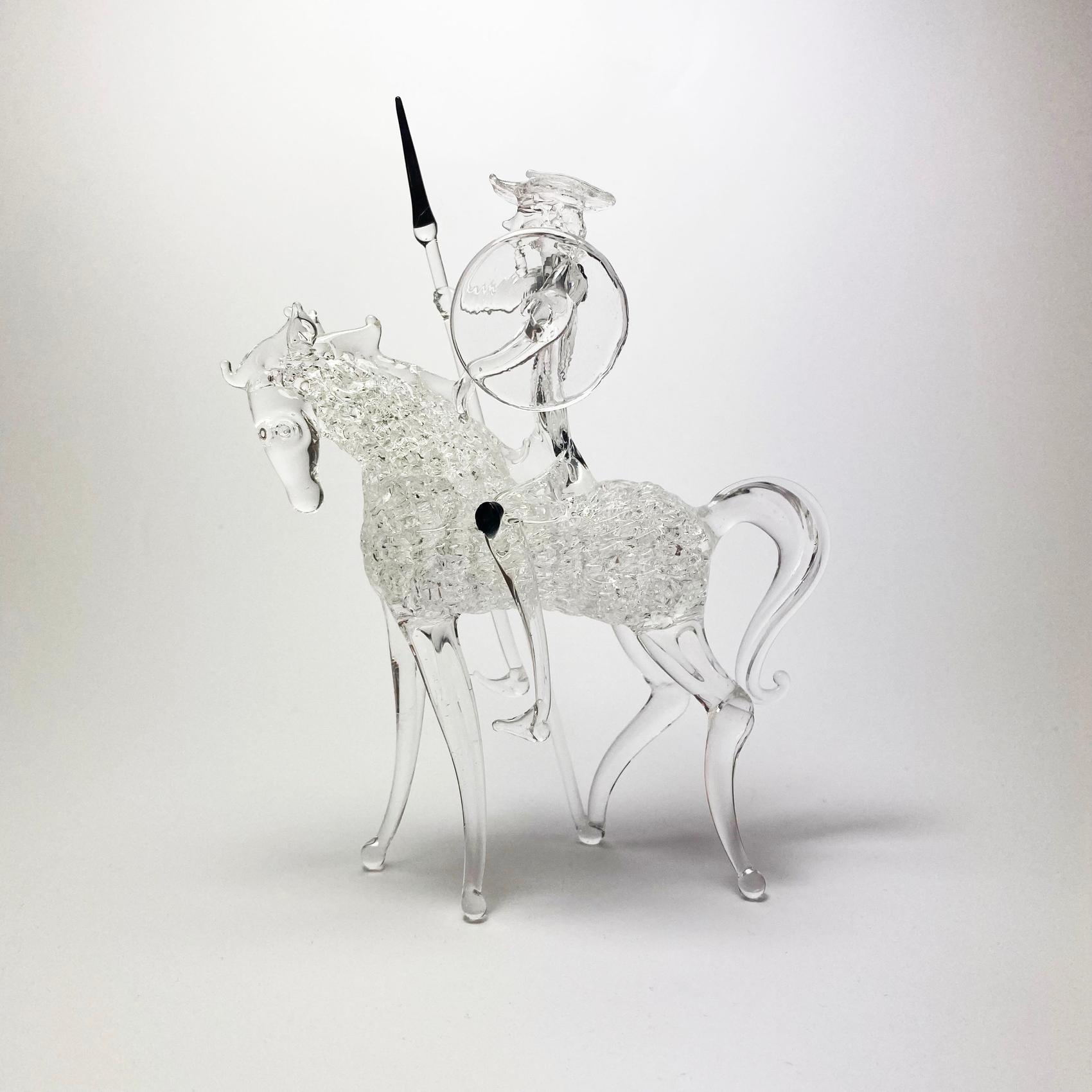 Figuras realizadas en vidrio de Borosilicato, con la técnica de vidrio tejido. El cuerpo o parte de la figura esta hecha con esta técnica, que consiste en dar calor, unos 1200 grados al extremo de una varilla de vidrio para que en cuestión de segundos, lo que tarda en solidificarse, hacer un tejido similar al crochet si se tratase de hilo en lugar de vidrio.