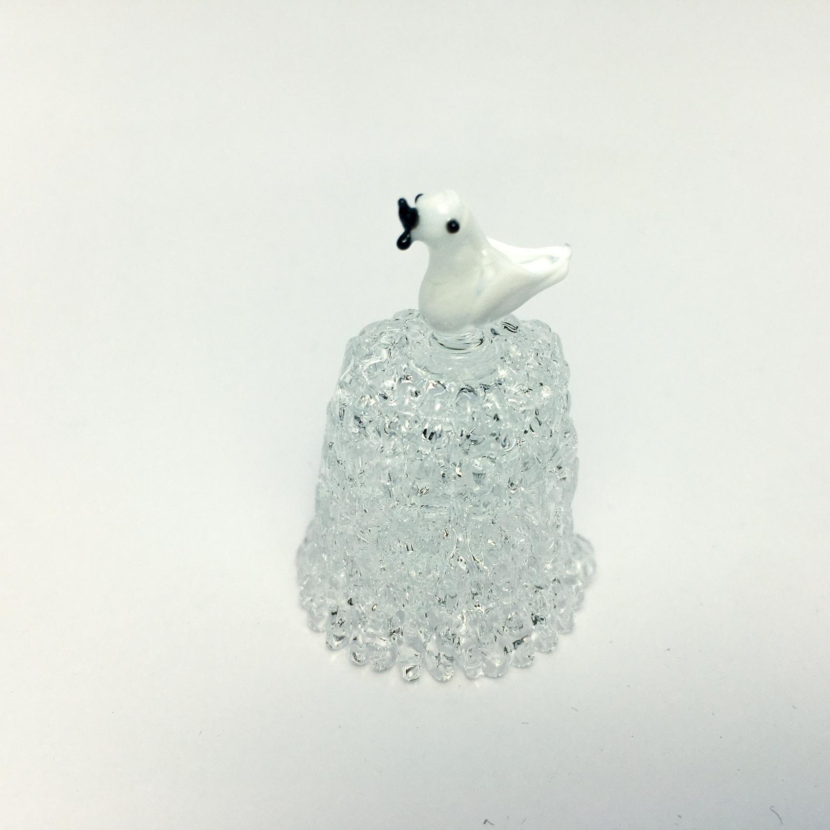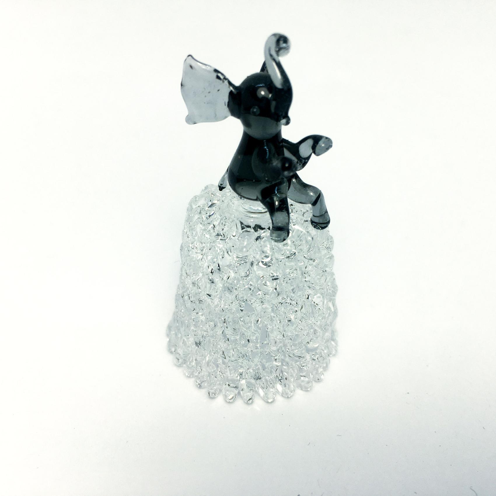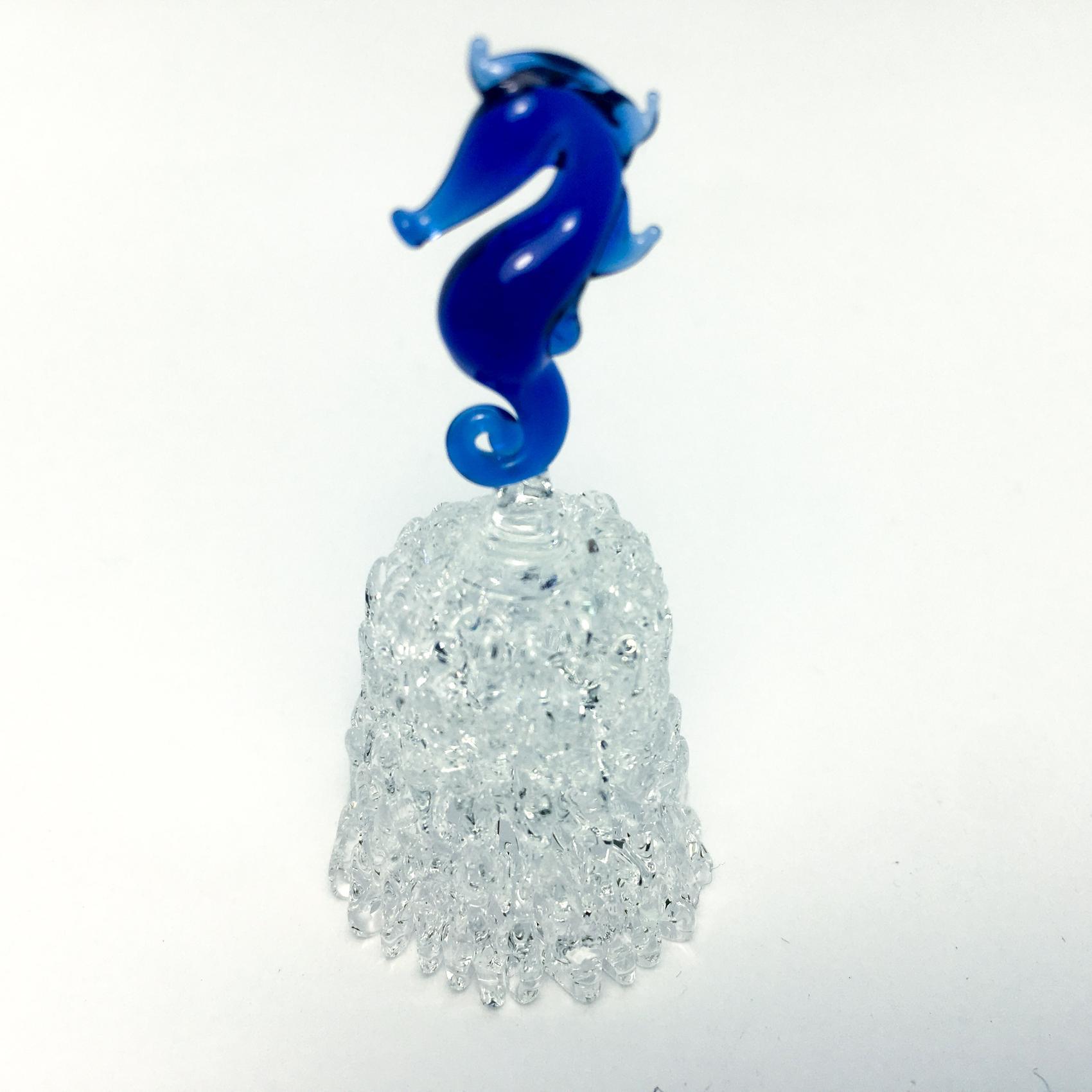 Realizados tejiendo vidrio a 1200 grados para formar el cuerpo del dedal. Sobre el trabajamos diferentes figuras.